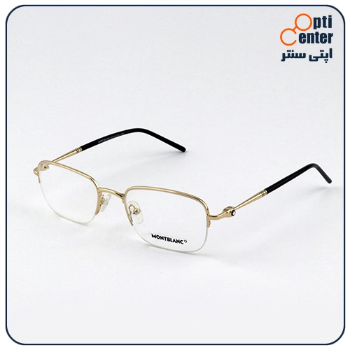 عینک طبی مردانه MONTBLANC مدل MB0131O با طراحی شیک نیمقاب، بدنهی استیل طلایی و ابعاد استاندارد، انتخابی لوکس و حرفهای برای آقایانی است که به استایل کلاسیک و کیفیت برتر اهمیت میدهند.