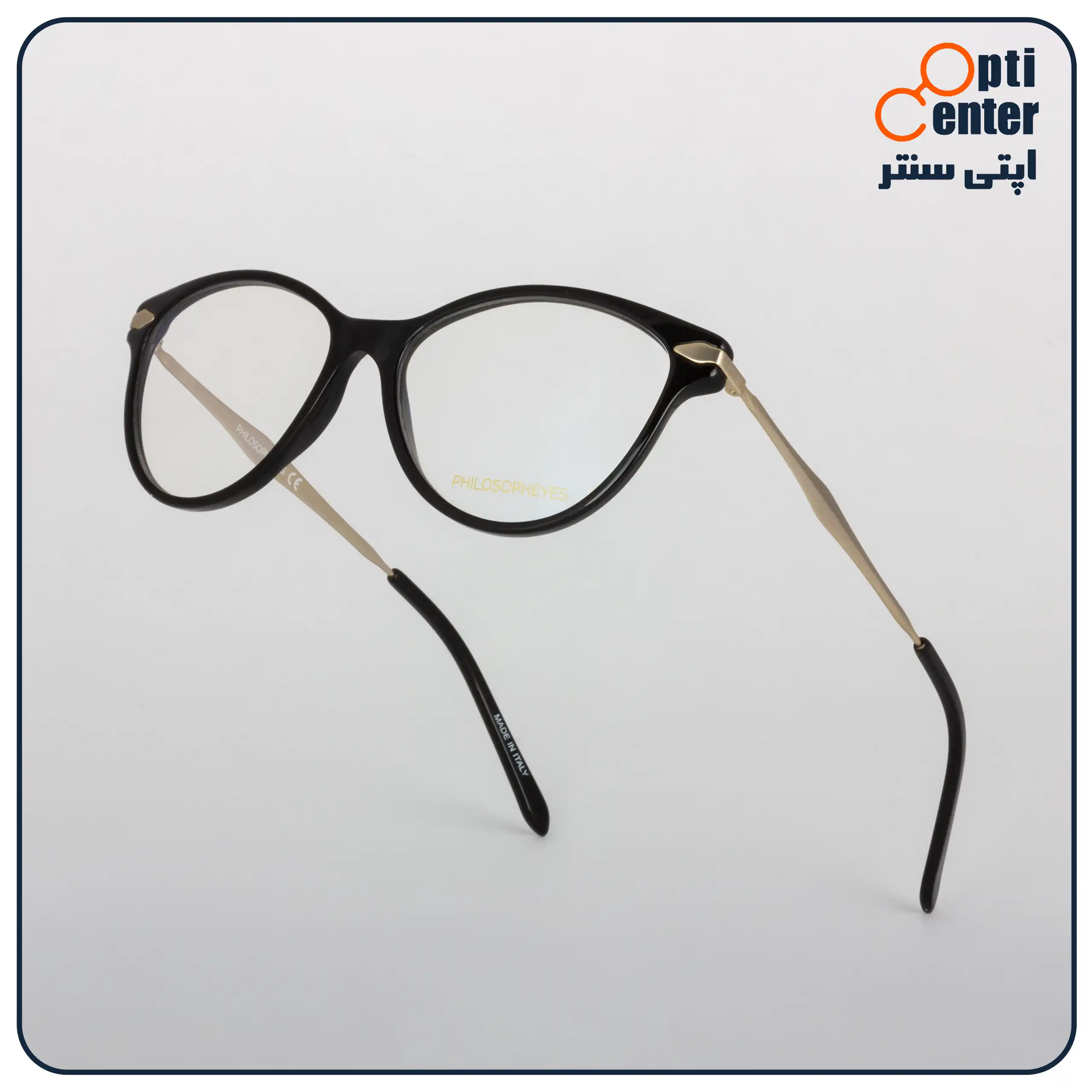 عینک زنانه PHILOSOPHEYES مدل PHP-976 با طراحی شیک و بدنه مشکی از جنس Acetate، ساخت ایتالیا با ضمانت اصالت و گارانتی یکساله. فریم تمام قاب کائوچویی، راحت و سبک با سایز استاندارد، انتخابی ایدهآل برای استایل روزمره و رسمی.